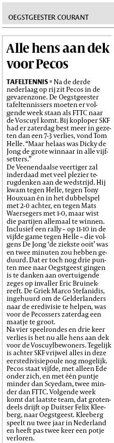 Alle hens aan dek voor Pecos Nu ons eerste team afgelopen zaterdag ongelukkerwijs opnieuw verloren heeft, moet ze zich schrap gaan zetten om degradatie te voorkomen. Lees hieronder meer.